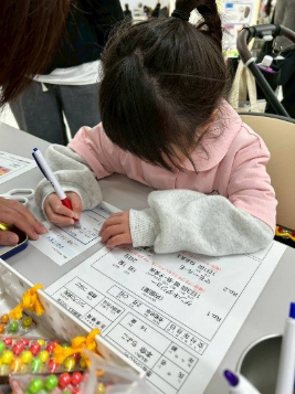 今回薬剤師として、薬袋に用法容量を記入し、処方箋を見ながら薬に見立てたお菓子を取り揃えてもらう仕事を体験してもらいました。数字を記入したり計算も必要だったりしたことから、子供たちの年齢によっては少し難しそうでした。代わりにハサミでお薬のシートを切ってもらったり、好きな色のお薬を選んでもらうことで喜んでもらえたと思います。なかには、将来薬剤師を目指しているお子さんもいらして、体験を通してその思いが強くなればと思いました。親御さんには、処方箋や薬袋の内容の細かな所にも気がついていただき、工夫して準備した甲斐がありました。このようなイベントを通して、薬剤師という仕事を多くの子供達に知ってもらうことができ良かったと思います。