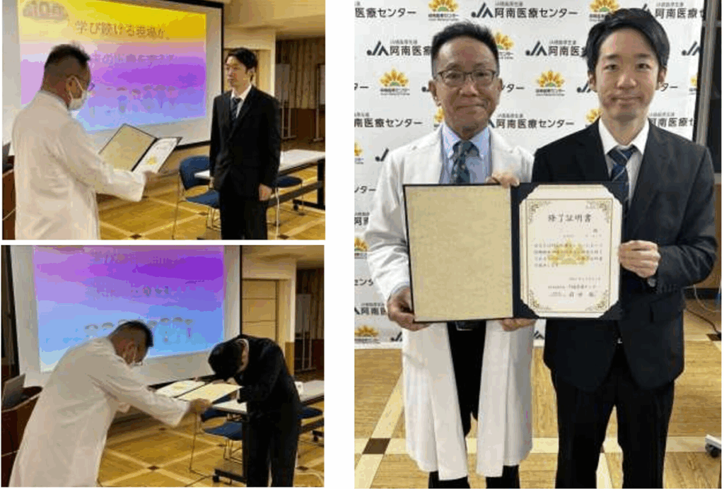 この度、当院にて初期臨床研修を行っておりました研修医が2年の研修期間を修了し、令和7年10月20日に開催された、当院医師臨床研修管理委員会おいて、修了の了承を得ました。